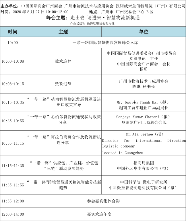 2020“一帶一路”國際智慧物流發(fā)展峰會議程
