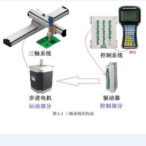 DMC630M 控制器支持三軸步進(jìn)電機(jī)、伺服電機(jī)控制,以步進(jìn)電機(jī)為例,三軸系統(tǒng)的構(gòu)成如 圖 1-1 所示: