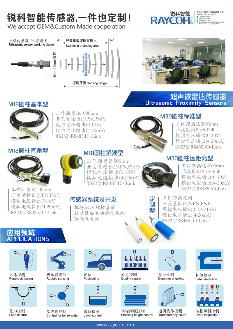 超聲波傳感器,移動(dòng)設(shè)備防撞系統(tǒng), 料位無(wú)接觸檢測(cè),超聲波傳感器,傳感器,位移傳感...