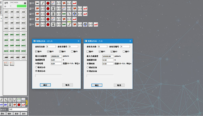 視覺(jué)龍“龍馬”運(yùn)控軟件采用圖形化來(lái)表示控制編程邏輯,簡(jiǎn)單易用,支持多品牌運(yùn)動(dòng)控制如雷賽、固高等;支持單軸和多軸點(diǎn)位運(yùn)動(dòng);支持多軸插補(bǔ)運(yùn)動(dòng),如直線、圓??;支持位置比較功能(飛拍);支持多種運(yùn)動(dòng)模型,如碼垛等。