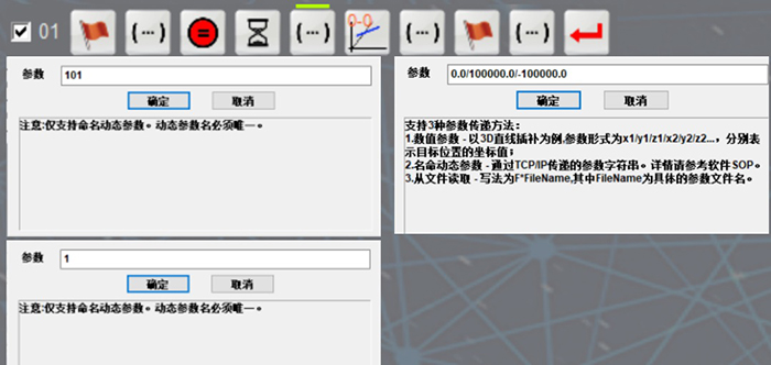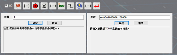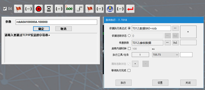 02程序:通知事件1有效,延時(shí)后發(fā)出通信指令rofA0A100000A-100000,其中A為間隔符,由視覺(jué)軟件設(shè)置。