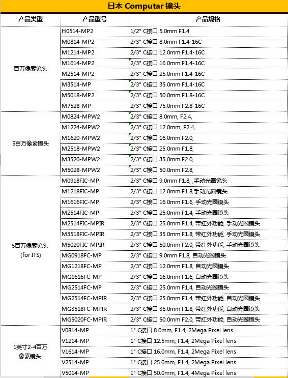 | HF-XA系列鏡頭 | HF6XA-5M |