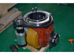 驅(qū)動部分采用直流電機和傳動箱組合,反對稱安裝方式。這種方式可以在使輪對同軸,提供較大動力(通常電機外形尺寸和功率成一定比例)的情況下,大大縮短輪距,節(jié)約空間,以使機器人體積小型化。由于采用這種安裝方式,電機的選擇就可比較廣泛,齒輪變速箱的作用可以提升扭矩,減小轉(zhuǎn)速,也可以利用之間的摩擦自鎖在需要停止時起到剎車作用,同時延長軸距以滿足輪對安裝需要。